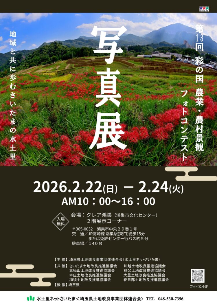 「地域と共に歩むさいたまの水土里(みどり)」をテーマとして開催された「第13回 彩の国 農業・農村景観フォトコンテスト」の審査結果を