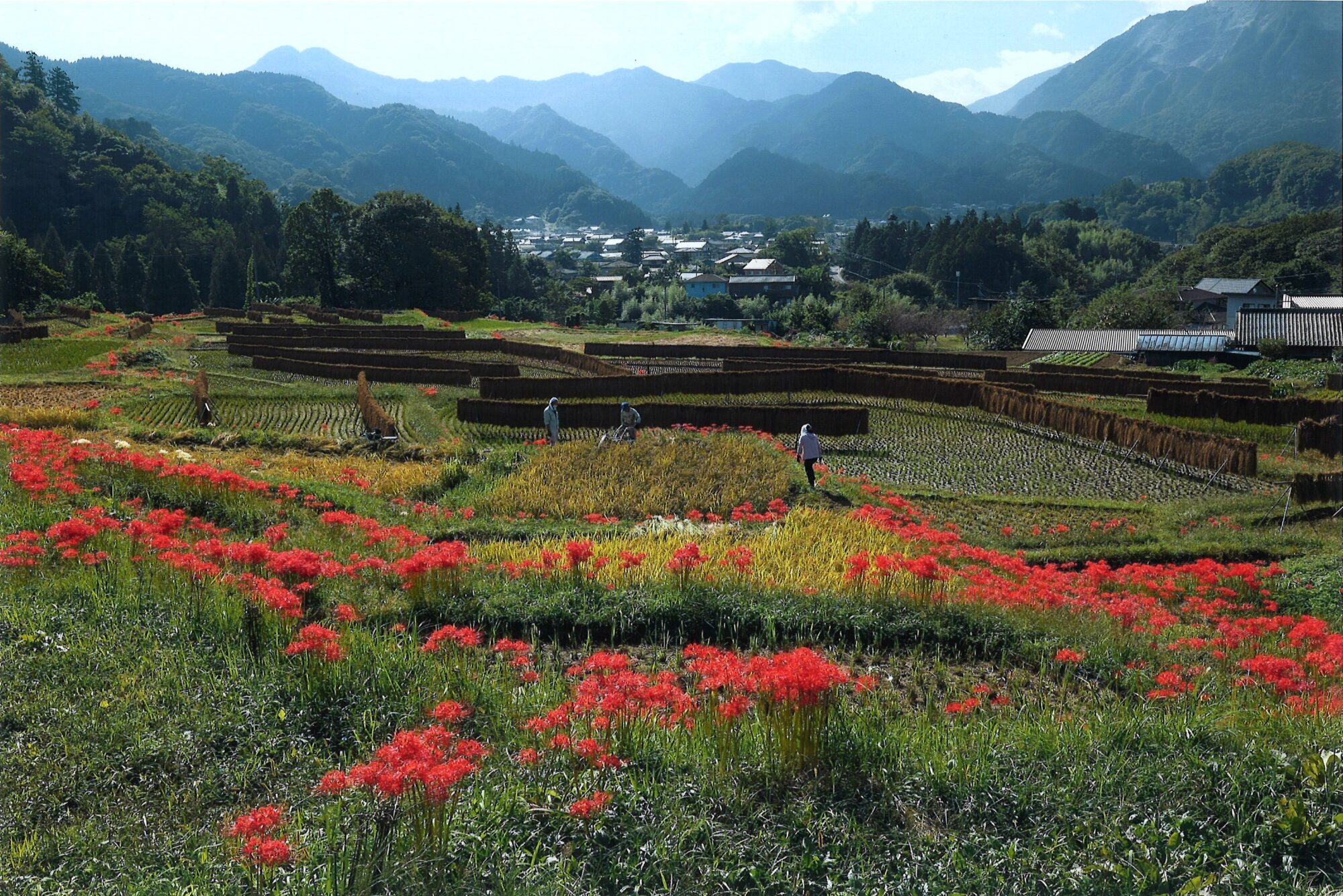| 撮影者コメント | 秋晴の陽射し、刈取りに余念のない人たち、豊作を祝福するかのような満開の彼岸花など誰もが郷愁を覚えるような里山の好き日を、1枚に閉じ込めました。赤が派手にならないように気を付けました。 |